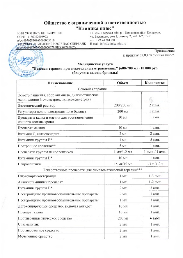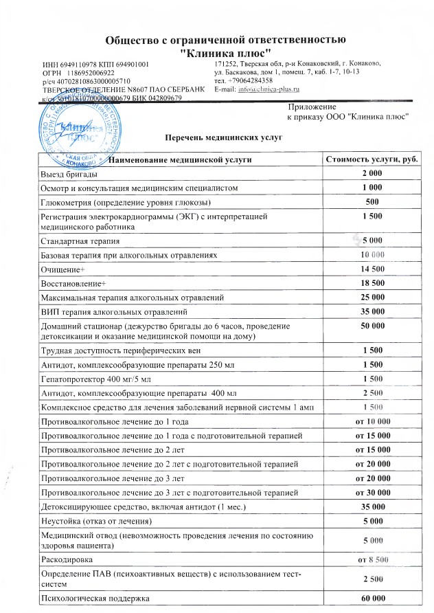 Цена не является окончательной и зависит от удаленности места жительства пациента и его состояния здоровья* Администрация клиники Плюс принимает все меры по своевременному обновлению размещенного на сайте прайс-листа, однако во избежание возможных недоразумений, советуем уточнять стоимость услуг в регистратуре или в контакт-центре по телефону 8 (800) 700-77-14. Размещенный прайс не является офертой. Медицинские услуги оказываются на основании договора.